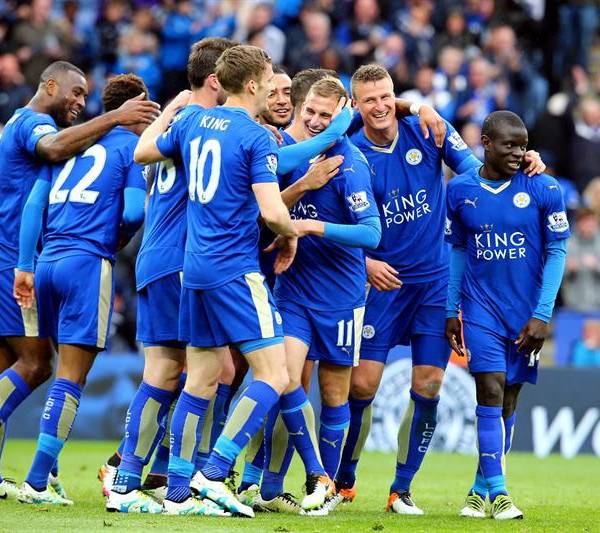 El modesto Leicester festeja su primer título de Liga Premier de Inglaterra gracias al empate 2-2 del Tottenham ante Chelsea.