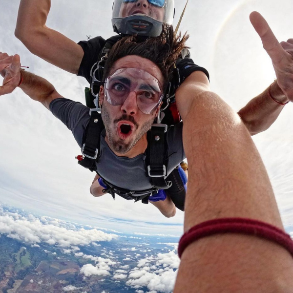 En sus redes sociales, Campana compartió una imagen saltando en paracaídas, a lo que sus compañeros lo felicitaban por haber cumplido esa actividad