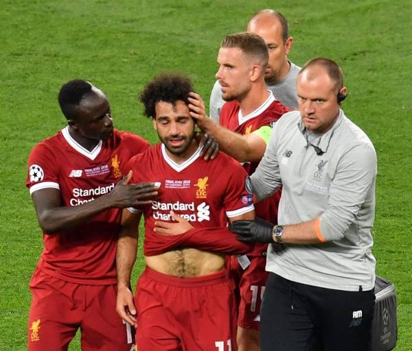 El futbolista egipcio se lesionó el hombro tras un forcejeo con Serio Ramos de Real Madrid