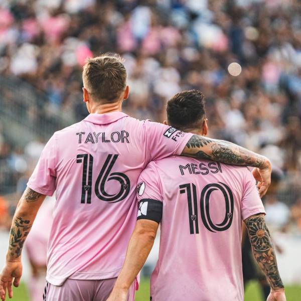 Taylor abraza a Messi tras convertir un gol al Philadelphia Union ( )
