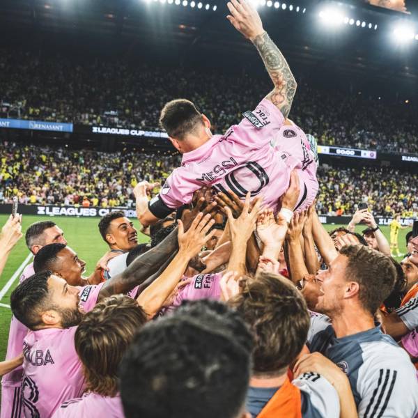 Jugadores del Inter Miami levantan en brazos a Lionel Messi ( )