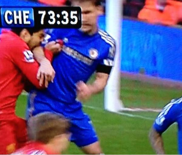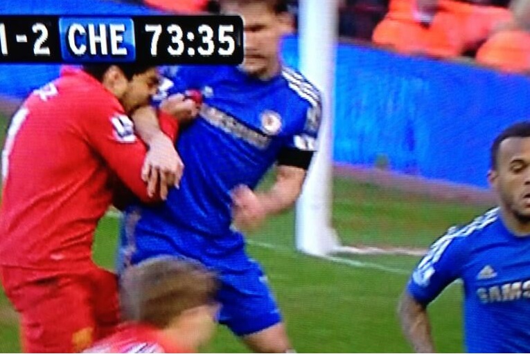 El delantero uruguayo Luis Suárez del Liverpool, mordió el brazo del jugador del Chelsea Ivanovic.