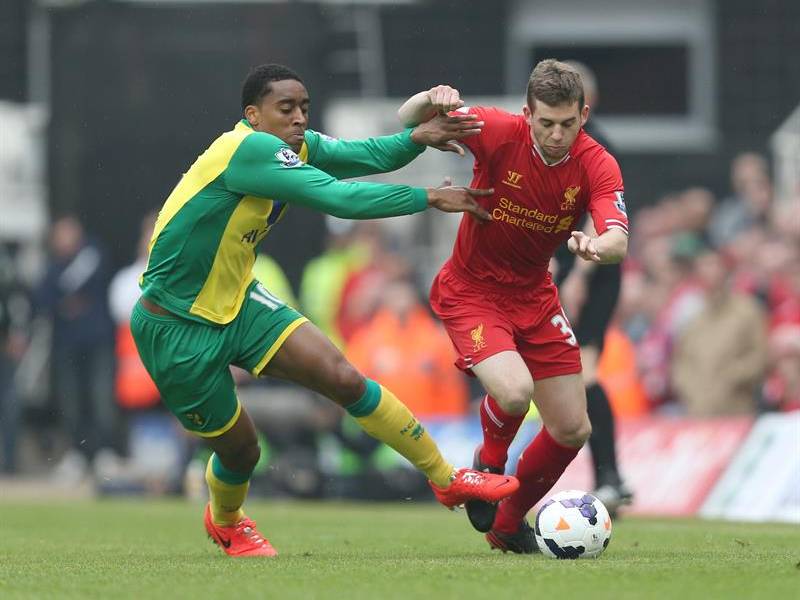 Árbitro: Andre Marriner. Tarjeta amarilla a Turner, Snodgrass y Howson, por el Norwich, y a Skrtel y Flanagan, del Liverpool.