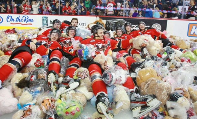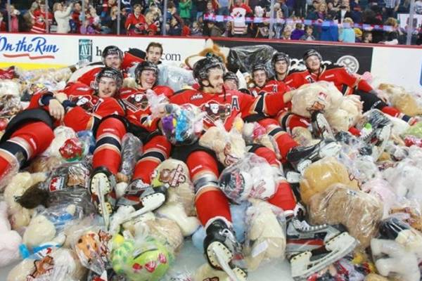 Una lluvia de osos de peluche paralizó un encuentro de hockey sobre hielo en Canadá cuando Jordy Stallard anotó el primer tanto a favor del local, Calgary Hitmen.