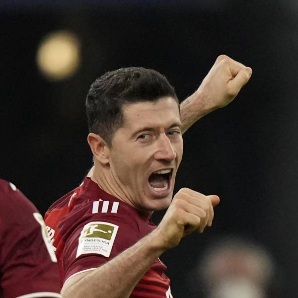 Robert Lewandowski celebra tras anotar un gol para el Bayern Múnich contra Friburgo por la Bundesliga.( )