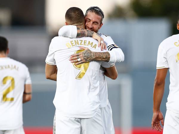 Benzema celebra con Sergio Ramos. Foto: Real Madrid.