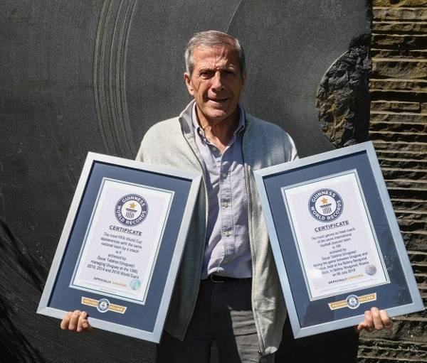 Guinness World Records, la organización que convalida los récords en el mundo, distinguió al entrenador de la selección uruguaya, Oscar Tabárez, por dos plusmarcas conseguida al mando de la Celeste.