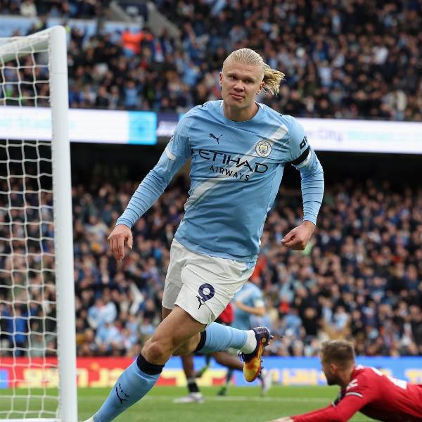 Erling Haaland anotó dos goles en la victoria del Manchester City al United.( )