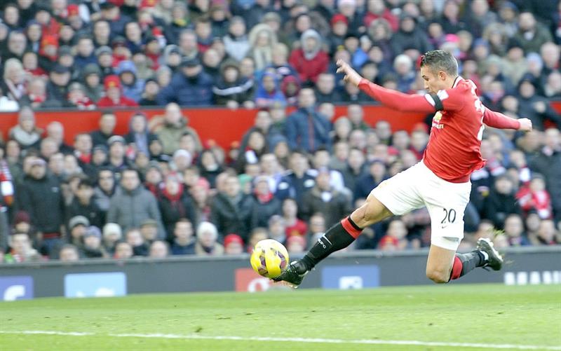 En una buena primera parte de los hombres que dirige el holandés Louis van Gaal, el United sentenció con goles de Robin Van Persie (27), Falcao (32) y del defensa jamaicano Wes Morgan en contra (44).