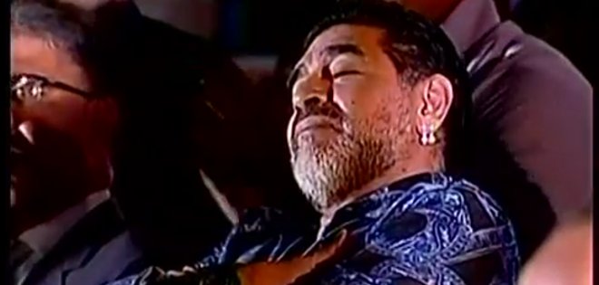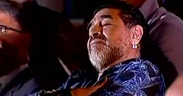 Maduro alababa las cualidades de su invitado en su discurso, pero al mencionarlo, las cámaras enfocaron a Maradona dormido, por lo que alguien que estaba ubicado atrás de él, tuvo que darle unos topes para que reaccionara.
