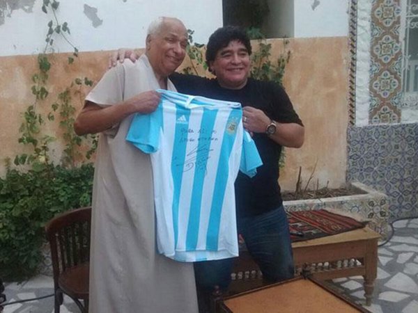 "Yo le regalé una camiseta argentina y él me obsequió la fotografía de aquel partido que cuelga en su casa. Mi dedicatoria: Para Ali, mi amigo eterno", escribió Maradona en su cuenta de la red social Facebook, tras visitarlo a Bennaceur en su residencia tunecina.