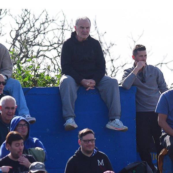 En redes sociales se viralizaron fotos de Bielsa subido en un muro para ver el encuentro y analizar los posibles futbolistas que pueda convocar.