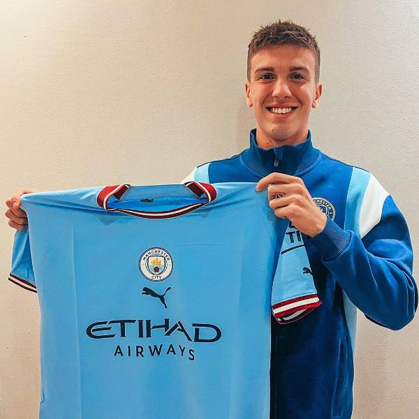 Perrone ya luce la camiseta de su nuevo club. El equipo que adiestra el español Pep Guardiola se lleva a una de las grandes promesas del fútbol argentino. Pese a sus 20 años de edad ha disputado 33 partidos en primera división desde su debut en marzo de 2022, marcando tres goles y asistiendo en dos oportunidades.