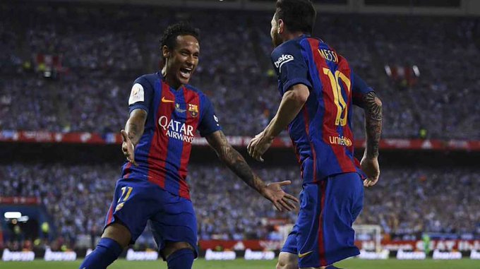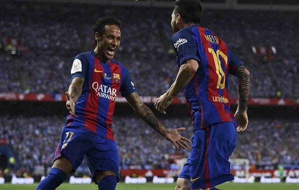 Neymar junto a Messi en un duelo del FC Barcelona.