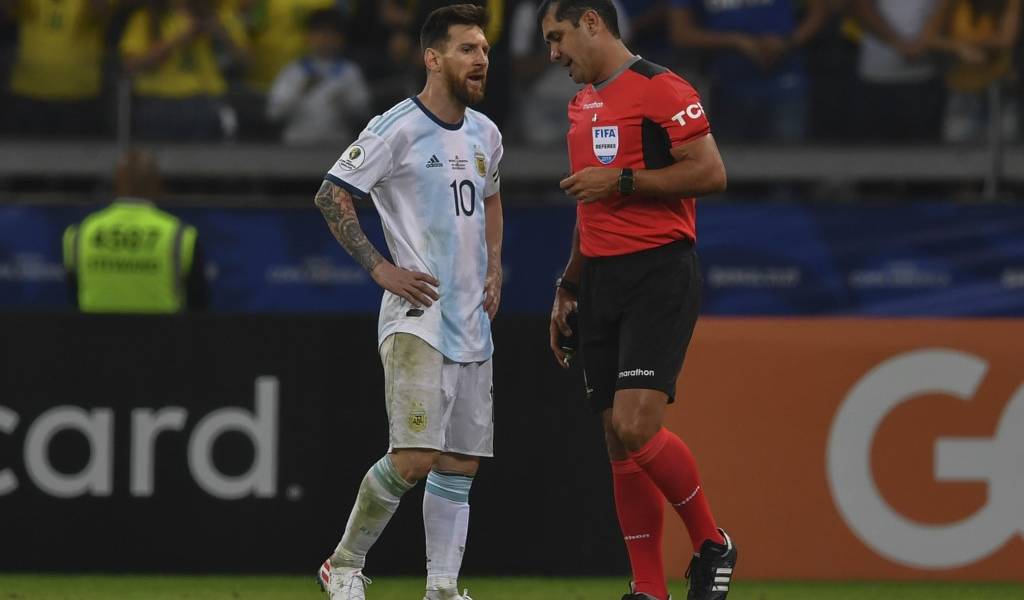 Lionel Messi mostró su molestia con el arbitraje del ecuatoriano Roddy Zambrano y aseguró que 'inclinó la cancha' a favor de Brasil en la semifinal de Copa América.