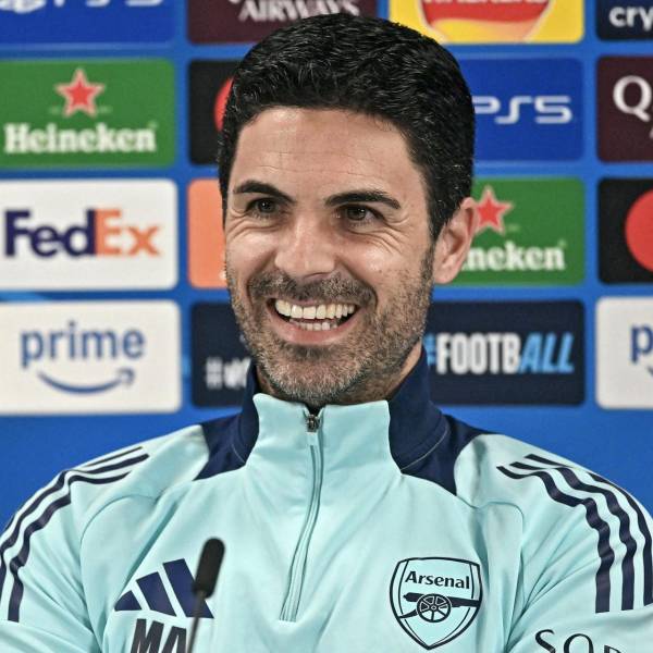 El entrenador del Arsenal, el español Mikel Arteta, durante la rueda de prensa previa al partido de ida de los cuartos de final de la Liga de Campeones contra el Real Madrid.( )