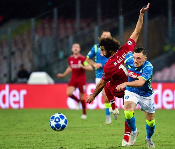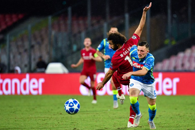 El atacante egipcio hizo gol de córner, pero tuvo que salir antes que se acabe el partido. Foto: Alberto PIZZOLI / AFP