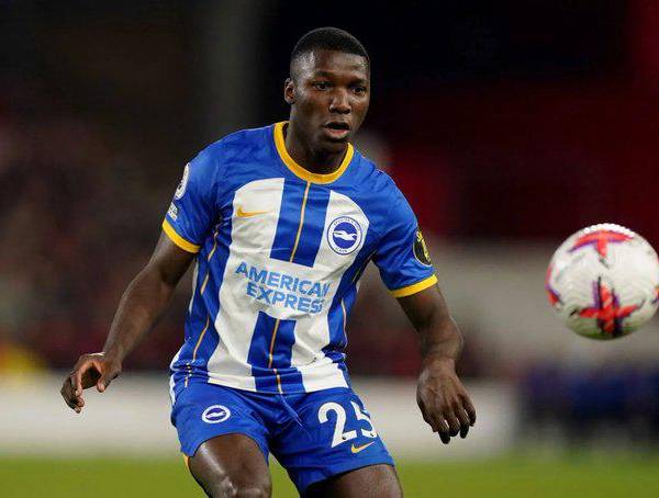 Jugador del Brighton Moisés Caicedo controla el balón( )
