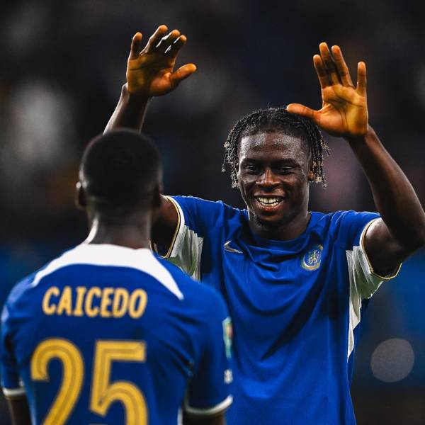 Moisés Caicedo celebra la victoria del Chelsea( )