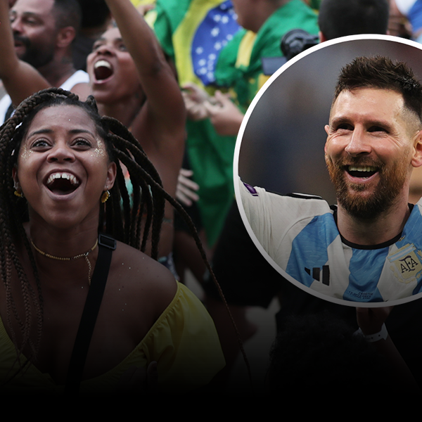 Mundial Qatar 2022: Hinchas brasileños alientan a la Argentina de Messi