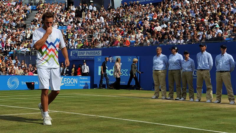 "Lo siento. Siento haber hecho esto. A veces sentimos frustración en la pista y eso es difícil de controlar. Fue un error. Es muy duro este momento, acabar una final así. A veces sentimos mucha presión. Es un error y tengo que pagar por ello. Todos cometemos errores", dijo el jugador argentino sobre la hierba de la pista central del Queen's Club.