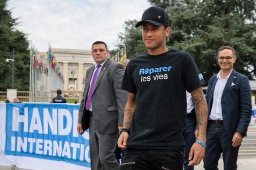 Neymar, la estrella brasileña que pasó recientemente del Barcelona al París Saint Germain por un récord de 222 millones de euros, se convirtió este martes en nuevo embajador de Handicap International, anunció la ONG en Ginebra, en presencia del jugador en una ceremonia en el Palacio de las Naciones, sede de la ONU en la ciudad suiza.