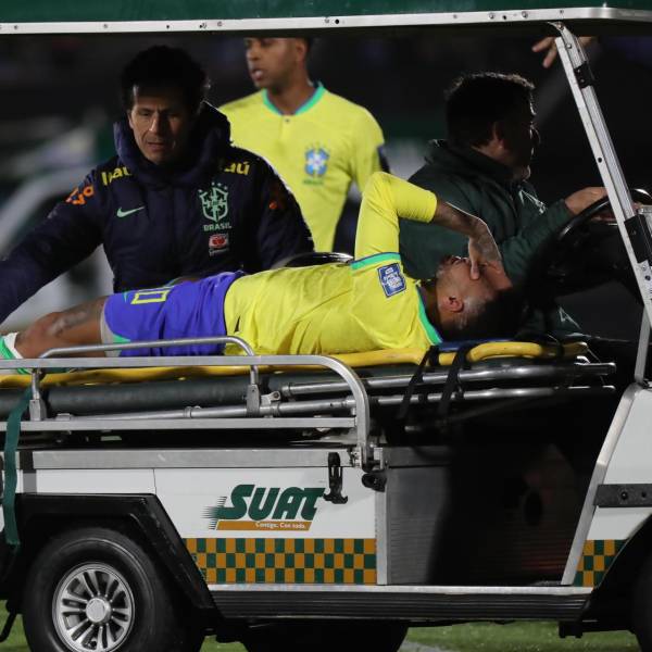 El brasileño, que no ocultó las lágrimas por la lesión, tuvo que ser retirado de la cancha en una camilla y abandonar el estadio con la ayuda de muletas.