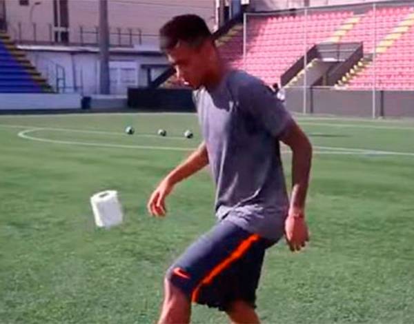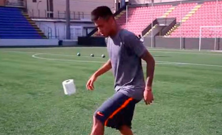 Una naranja, medias de fútbol y hasta un rollo de papel sanitario sirvieron para que el brasileño haga cascaritas para dejar así en evidencia el gran talento que tiene.
