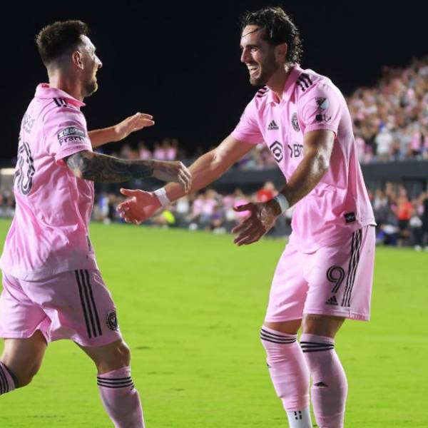 Lionel Messi celebra un gol con Leonardo Campana en el Inter Miami( )