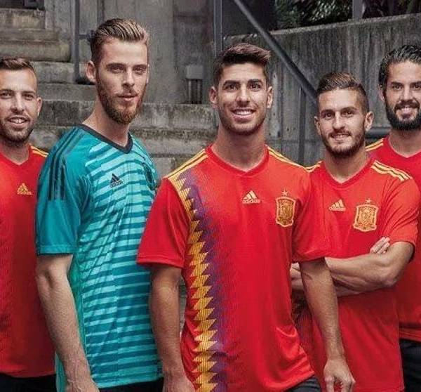 La nueva camiseta que la selección española lucirá en el Mundial de Rusia 2018 ha causado polémica por un efecto óptico provocado por la mezcla del rojo y el azul para formar un ribete morado, que para algunos recuerda la bandera de la II República Española.