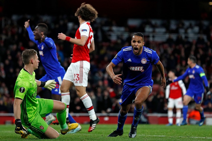El Olympiakos eliminó al Arsenal en el último suspiro de la prórroga con un gol del marroquí Youssef El-Arabi y ganar 2-1, este jueves en el Emirates Stadium de Londres para lograr la clasificación a los octavos de la Europa League.