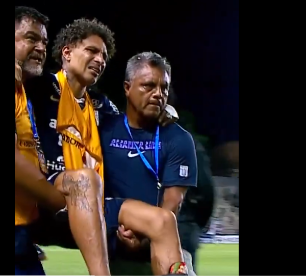 El delantero se retiró al cambio por sus propios medios, pero minutos después no pudo caminar para dirigirse a los camerinos. Guerrero tuvo que salir cargado en brazos por los miembros del cuerpo médico del equipo limeño.