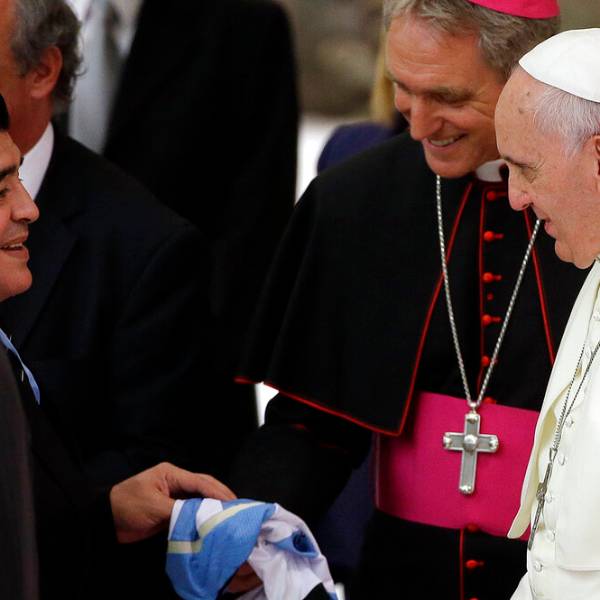 Hincha ávido del fútbol, especialmente del club argentino San Lorenzo, el Papa se reunió con Maradona en el Vaticano en 2014 durante una audiencia especial por un partido organizado con fines benéficos.