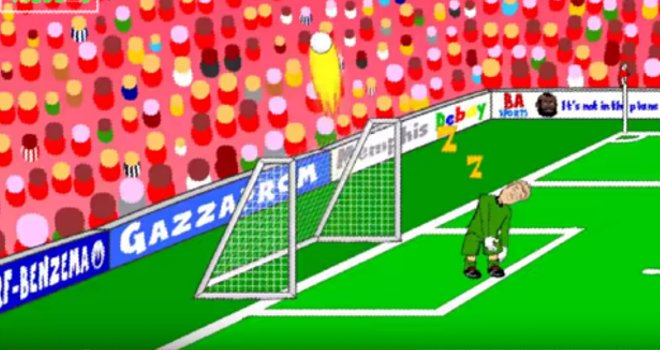 El portal 4-4-2oons mostró en video las parodias de las anotaciones en los encuentros que terminaron con resultados de 1-1 entre Roma y Barcelona, 41- Bayern Leverkusen y BATE Borisov, 0-3 Olympiakos ante Bayern Múnich, 2-1 Dinamo Zagreb frente al Arsenal, y otros.