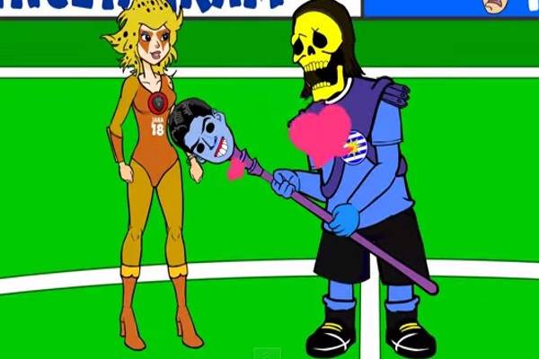 El canal de Youtube 4-4-2oons se hizo eco de la acción en la Copa América y subió a la red una divertido video en el que grafican a Jara como Skeletor, el huesudo rival de He-man en dibujos animados y a Jara como Cheetara de los Thundercats.