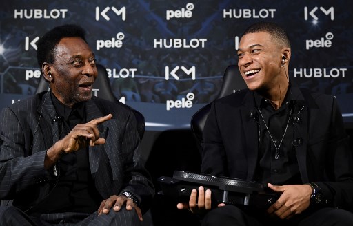 "Mil goles, es posible para él", afirmó Pelé señalando a Kylian Mbappé, que respondió con una gran sonrisa: "Pienso que estaré todavía lejos al final de mi carrera".