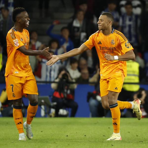El Real Madrid firmó una victoria por 0-2 ante la Real Sociedad, gracias a dos penaltis transformados por Vinicius y Kylian Mbappé en la Liga.