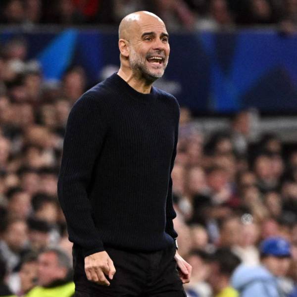 Pep Guardiola en el partido por los playoffs entre el Real Madrid contra el Manchester City por la Champions League ( )