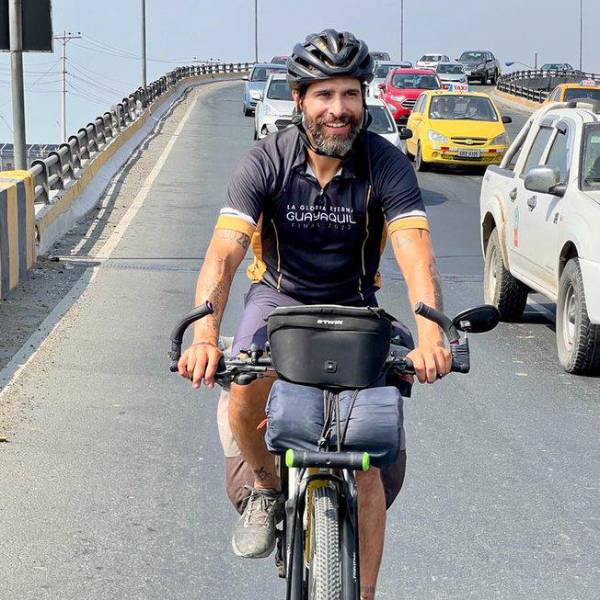 Periodista brasileño, Diego Salgado salió en bicicleta desde Montevideo hasta Guayaquil. Esta travesía duró 50 días.