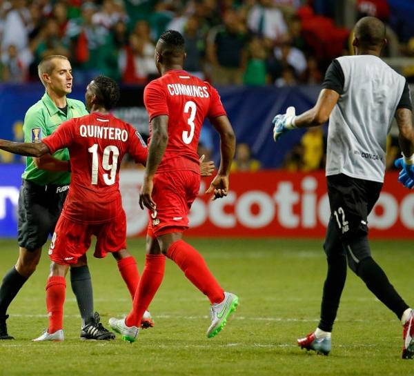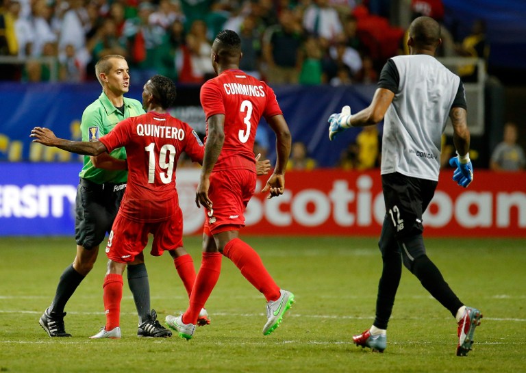 Los panameños reclamaron por el penal que les negó la clasificación a la final. Foto: AFP.