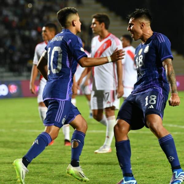 Argentina venció este miércoles a Perú por 0-2 con tantos de Thiago Almada, de penalti, y de Luciano Gondou, con lo que ganó su primer partido del Preolímpico sudamericano que se disputa en Venezuela, alcanzó a Paraguay en la cima del Grupo B y ahorró para la próxima fecha en la que descansa.