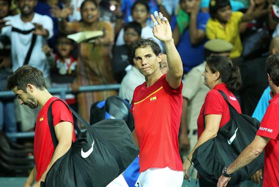 Rafael Nadal (c.) jugó la Copa Davis el pasado fin de semana con España. Foto: EFE
