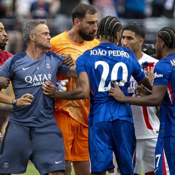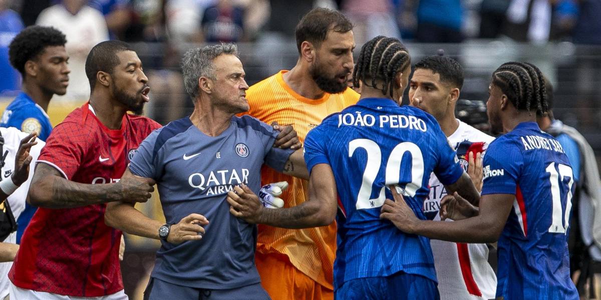 Tras el pitido del final de un partido que se calentó en el tiempo añadido con varias entradas duras, se produjo en el centro del campo una tangana en la que se vio involucrado Luis Enrique. El técnico español acudió a una zona donde Achraf Hakimi y Gianluigi Donnarumma discutían con João Pedro, que cayó al césped tras sentir un golpe.