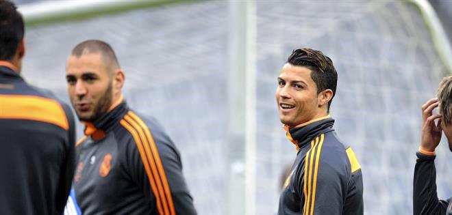Karim Benzema y Cristiano Ronaldo en una práctica del Real Madrid (Foto: EFE)
