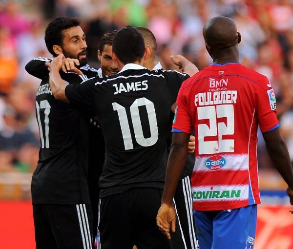 Los tantos blancos en el estadio Nuevo Los Cármenes los consiguieron el portugués Cristiano Ronaldo (minuto 2), el colombiano James Rodríguez (31, 86) y el francés Karim Benzema (54).