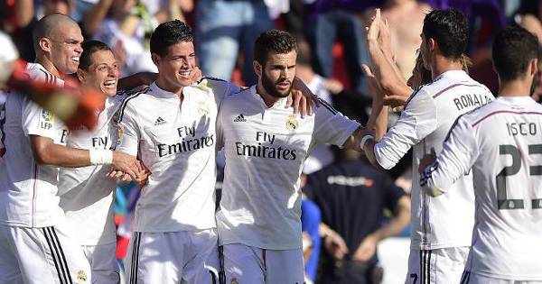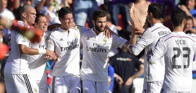 Cristiano Ronaldo, en dos ocasiones (13, de penal, y 61), el mexicano Javier 'Chicharito' Hernández (38), el colombiano James Rodríguez (66) y Francisco Alarcón 'Isco' (82) fueron los autores de los tantos madridistas.