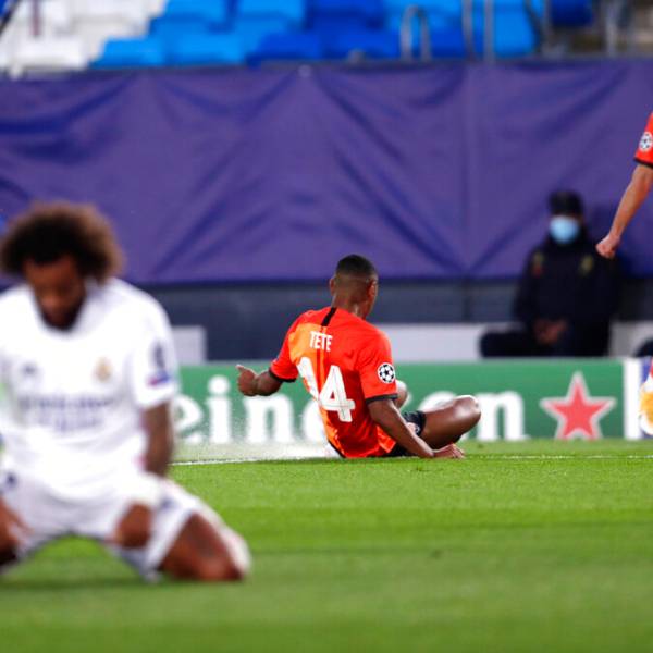 Dio paso a unos minutos de una debilidad del Real Madrid que no se veían en Europa desde la noche negra ante el Ajax en el Santiago Bernabéu, goleado en octavos de hace dos ediciones. En trece minutos el Real Madrid encajó tres goles. La cara de Courtois, un poema cuando sacaba un disparo de Dentinho y el rechace golpeaba en Varane para meter el balón dentro de su portería. Y en pleno desconcierto Tete retrataba a todos con un taconazo dentro del área y Solomon marcaba libre de marca, sin que ningún central le siguiese.