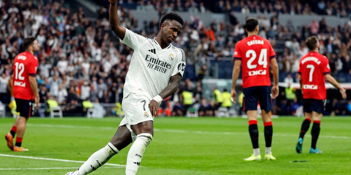 Frente a un equipo que nunca inquietó al portero ucraniano Andriy Lunin, Vinícius olvidó la decepción y el enfado por no haber ganado el Balón de Oro con un 'hat trick': hizo el segundo en un mano a mano con Herrera tras recibir una asistencia de Lunin (61) y el tercero aprovechando un pase de Brahim ante la pasividad de la defensa navarra (69).