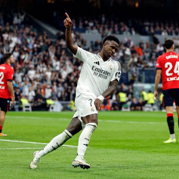 Ante un Osasuna inocente que dejó pasar la oportunidad de hacer daño a Real Madrid en el Estadio Bernabéu, Vinícius abrió el marcador pasada la media hora de juego con un derechazo desde el interior del área, culminando una jugada que comenzó con una recuperación de Bellingham.