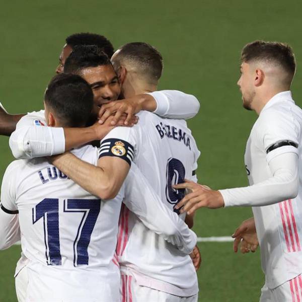 El cuadro blanco celebra uno de los goles frente a su máximo rival. Foto: EFE / Juanjo Martín